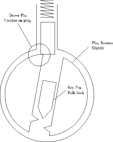 As the pick leaves the pin, the key pin will fall back to its initial position,